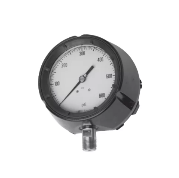 Manómetro destinado a las industrias de proceso (petróleo, química, bioquímica y energía).Está equipado de una pared de seguridad y un fondo eyectable que garantizan la protección de las personas en caso de rotura accidental del tubo manométrico. Es hermético y puede llenarse con líquido amortiguador. Está equipado con una membrana de compensación que garantiza la precisión manteniendo el equilibrio de presión entre el interior de la caja y la atmósfera.