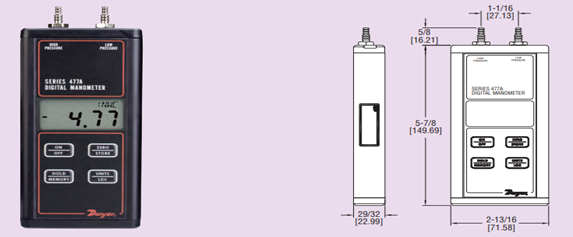 Ideal para uso en campo o en el laboratorio, el manómetro digital de una presión modelo 476A-0 mide presiones bajas de -20 a 20″ de columna de agua con una exactitud del ±1,5% de la escala completa. Diseñado específicamente para contratistas de calefacción, ventilación y aire acondicionado, el modelo 476A-0 puede usarse para ajustar presiones de suministro de gas, verificar el funcionamiento de interruptores de presión, ajustar reguladores, revisar sistemas neumáticos y periféricos de computadoras. La robusta unidad de mano se fabrica con un estuche de aluminio extrudido de excepcional durabilidad.