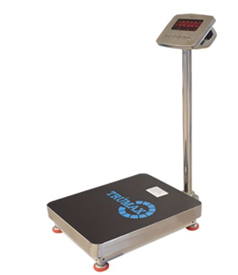 Bascula Trumax solo peso con estructura tubular y cubierta en acero inoxidable, celda de carga monobloque con capsula de protección contra humedad, topes para sobrecarga. Indicador solo peso full inox, display tipo LED rojo de alta visibilidad con batería recargable. Función de conteo por muestra y límites de peso. Capacidades disponibles: 60kg x 10g; 150kg x 20g; 300kg x 50g.